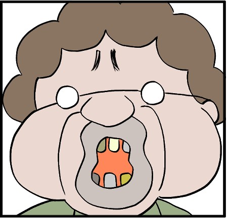 常に電話に出れるよう流動食しか食べない。顎が退化している。